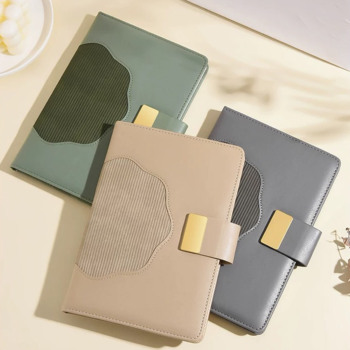 High Quality A5 Promotional Custom logo White PU Leather Notebook With Square Pendant Magnetic Buckle Personalized Planner Dairy