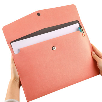 Pink A4 Document Organizer Bag Custom Logo Pu Leather Envelope Folder File With Magnetic Button Stationery Envelope File Holder